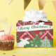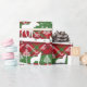 Belo feriado vermelho com árvores cobertas de neve, alce, lobo e raposa. Um retrô muito bonito olha em vermelho, verde e branco. Escolha Papel de ondulação brilhante, Papel de enrolamento de linen ou Gloss de fotos.