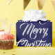 Feliz Natal, marinho escuro, azul e branco, com a caligrafia personalizada elegante.
