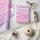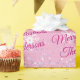 Personalize nomes e Feliz Natal, ou mensagem, em texto de guião fuchsia sobre fundo de rosa claro com flocos de neve e brilho; perfeito para embrulhar esse presente especial. Clique em "Editar Design" para alterar cores e digitar estilos.