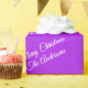 Personalize os nomes, Feliz Natal, ou mensagem, em texto branco em fundo roxo; perfeito para embrulhar esse presente especial. Clique em "Editar Design" para alterar cores e digitar estilos.
