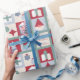 Feliz Natal! embrulhando papel em vermelho + azul + verde! Faça seus próximos presentes de férias se destacarem com este belo conjunto de embrulhos!