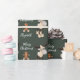 Este bonito papel de embrulho de alce de Natal ficará perfeito debaixo da sua árvore de Natal. A design apresenta um lindo alce de natal e chato e biscoito de gengibre em um fundo verde de sábio escuro. Personalize com seu nome.