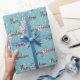 Texto de NATAL de MERCADO vermelho com flocos de neve em fundo de turquesa. O texto é editável.
