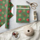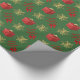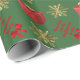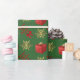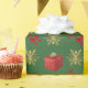 Design de papel embrulhado festivo, personalizado, de Natal, com flocos de neve dourados de inverno e flocos de neve vermelhos presentes e arco vermelho de fita em um plano de fundo verde-comum personalizável, personalize este design, adicionando seu nome de família ou a saudação de texto do Xmas e adicionando sua foto de família favorita. NOTE que o ouro não é metálico.