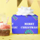 Candy Cane design. Folha de papel azul brilhante bonito de uma cana doce azul-clara com aspecto de tiras cor-de-rosa 3D e contorno. Texto dizendo, Feliz Natal em uma cor branca. Mantenha o ditado ou PERSONALIZE inserindo sua própria mensagem. Candy Cane tem o aspecto de um biscoito cozido. Clique em PERSONALIZAR TI para alterar a cor azul de fundo, se desejar. Arte original © TamiraZDesign.