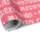 Este papel de embrulho festivo apresenta um padrão alegre e repetitivo de "Feliz Natal" e "Saudações da Época" em uma letra branca e divertida, escrita à mão contra um fundo vermelho. O design é perfeito para adicionar um pouco de alegria de férias aos seus presentes nesta temporada.