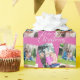 Feliz Natal Script Moderno 3 Foto Personalizado Wrapping Paper Gift Wrap apresenta o texto "Feliz Natal" na tipografia moderna escrita de caligrafia com três de suas fotos favoritas em um fundo cor-de-rosa escuro. DICA DA FOTO: centralize fotos antes de carregar no Zazzle. Perfeito para embrulho de Natal e de presentes de Natal. Elaborado por ©Evco Holidays www.zazzle.com/store/evcoholidays