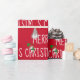 Fonte de Natal Branca com boneco de neve e pinheiro com chapéu em fundo vermelho. A cor de fundo pode ser alterada.