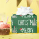 Fonte de Natal Branca com boneco de neve e pinheiro com chapéu em fundo verde com flocos de neve. A cor de fundo pode ser alterada.