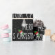 Fonte de Natal Branca com boneco de neve e pinheiro com chapéu em fundo preto com flocos de neve. A cor de fundo pode ser alterada.