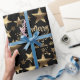 Feliz Natal Stars Black and Faux Dourado Elegant Script, Na moda de papel de empacotamento de presentes no Natal, Adicionar nome ou texto