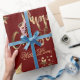 Papel De Presente Feliz Natal Stars Vermelho Dourado Elegante