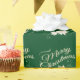 Este papel de embrulho apresenta um gráfico digital inspirado em vintage de poinsetos brancos sobre um fundo verde escuro. O texto do script em uma cor de gradiente dourado diz: Feliz Natal.