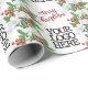 Design de papel de embrulho de presente de Natal festivo com um colorido buquê de inverno com flores brancas, frutos vermelhos e botânicos verdes brilhantes. A caligrafia moderna de Feliz Natal em vermelho adiciona um toque de modernidade a essa arranjo floral elegante e sofisticado. Feliz Natal!