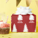 Um Livro Vermelho Simples e Brilhante com Árvore de Natal Branca e Texto "Feliz Natal".
