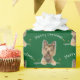 Um belo aterrador Yorkshire com a louça prateada e luzes de férias num fundo verde com o texto Feliz Natal. A cor de fundo pode ser alterada.