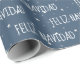 Texto de Feliz Natal Espanhol com floco de neve e design estrelado em fundo azul. O texto pode ser editado.