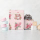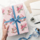 Papel De Presente Feliz Neve e Holly Padrão de Natal a Rosa