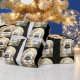 A tipografia Feliz das Bruxas, que apresenta morcegos e teias de aranha e uma lua de cheio assustadora com um arco em sombras de enfumaçados artísticos em sepia e tons pretos sobre fundo negro. Coloque seu nome e ano atual para assustar um assustador e se divertir nesta temporada de Halloween!