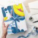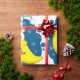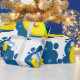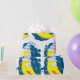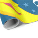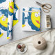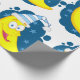 Um rosto amarelo feliz vestindo um chapéu azul e branco. Este design parece realmente eficaz nestes papéis de enrolamento
