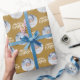 Papel de embrulho fotográfico, personalizado com a sua fotografia e gravado à mão com Feliz Tudo em caligrafia escovada. O modelo de fotografia está configurado para apresentar a sua imagem em forma redonda. Se tiver algum problema com o posicionamento da imagem, tente recortar a foto em um quadrado e carregá-la novamente. A cor de fundo é ouro, que você pode alterar (basta clicar em "editar usando a ferramenta design").