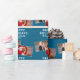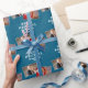 Feliz Feriados 2 Foto Colagem Flocos de Neve Quebrando Papel. Folha de presente de Natal de Natal moderno com fundo azul com flocos de neve. A design tem um roteiro branco moderno - personalize o texto. Insira suas fotos no modelo.