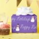 Texto de Feliz Feriado em design de corda e boneco de neve em fundo roxo. A cor de fundo pode ser alterada.
