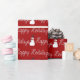 Texto de Feliz Feriado em design de corda e boneco de neve em fundo vermelho. A cor de fundo pode ser alterada.