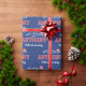 Prepare-se para o Natal com papel de embrulhamento de nome personalizado! Esta design festiva apresenta uma tipografia inspirada em camisa desportiva, com uma letra de bloco retrô, um chapéu de Papai Noel e estrelas. Personalize a modelo com o nome do destinatário, o ano, e você pode personalizar a frase 'Chill and be feliz' com sua própria mensagem de feriado. Este design simples e na moda é perfeito para crianças, adolescentes, família e amigos! Um pacote de presentes de padrão uniforme, disponível com um acabamento brilhante ou fosco. Cores impressas: azul escuro, marinho, vermelho e branco.