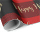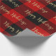 Papel De Presente Felizes Férias Script Dourado Plaid Vermelho Búfal