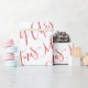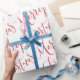 O papel de embrulho de presente de Natal apresenta um roteiro de caligrafia moderno de Natal em vermelho e branco.