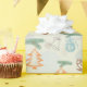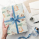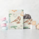 Ilustração de pomba castanha sobre um padrão uniforme de fundo bege. Árvore de Natal verde, com ornamentos pendurados. Sinos e flocos de neve enchem este lindo padrão de Férias.