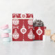Enrole seus presentes de férias com este papel de embrulho sazonal com belos Enfeites de natal em fundo vermelho. Seus presentes ficarão muito alegres debaixo da árvore.