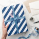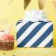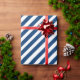 Um papel de embrulho de feriado branco e azul-marinho, com faixas largas na diagonal do marinho.