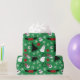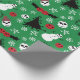Esse padrão oferece um estilo de gótico girando sobre os tradicionais motivos natalinos com flocos de neve e formas estelares formadas por ossos brancos de esqueleto, Enfeites de natal em forma de crânio e bagas ocas, coroas e árvores de Natal preto assustadoras e ornamentos e bonecos de neve. Minhas ilustrações em branco, preto, cinza e vermelho são colocadas sobre um fundo verde festivo. Então este papel de embrulho definitivamente tem uma aparência festiva de Christmasy mesmo que os gráficos assustadores pareçam um pouco mais de Halloween.