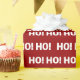 Padrão de 'Ho Ho Ho' em branco sobre fundo vermelho.