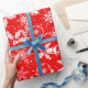 Este design de feriados apresenta um padrão vermelho e branco de sinos de Natal, flocos de neve e sagrado. #natal #feriados #sazonal #festivo #moderno #na moda #chic #holly #snowflakes #inverno #vermelho #branco #giftwrap #wrappingpaper #giftwrapper #elegante #christmasparty #partysupply