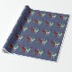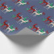Papel de embrulho de Natal azul, de na moda único país, concebido com renas de cristal de cor-de-água pintadas à mão em três variedades de pedra: esmeralda, rubi e diamante