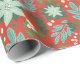 Este belo papel de embrulho de Natal apresenta elementos florais desenhados à mão em vários tons de verde, menta, chato, esbranquiçado. Incluem-se o pinheiro, as flores, os prigos, as folhas, as bagas num padrão na moda moderno em todo o impressão. A cor de fundo é um tradicional vermelho clássico de Natal. Arte original de Caroline Bonne Müller