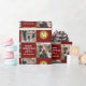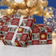 Papel De Presente Feriado Dourado Vermelho do Monograma Personalizad
