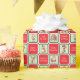 As imagens tematizadas do Natal bonito em quadrados verdes individuais alternando com quadrados vermelhos que cada um tem diferentes desejos de feriado. As imagens são um boneco de neve, uma estocação listrada de cana-de-açúcar, um Papai Noel, uma rena, uma árvore de Natal decorada, um biscoito de pão de gengibre, uma casa de pão de gengibre e um pouco de elfo. Todos os desejos de feriado podem ser facilmente alterados para qualquer saudação que você preferir.