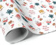 Papel personalizado de empacotamento de presentes de natal, ao qual você pode adicionar uma repetição de ou para mensagem. O design tem um padrão festivo de natal de boneco de neve e luzes de natal, neve derramada na árvore de natal, uma confortável janela de inverno e presentes de natal embrulhados por presentes.