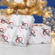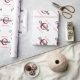 Este papel de embrulho personalizado trará um toque pessoal aos presentes de férias. Apresenta um padrão repetitivo de um nome em caracteres de script retrô preto sobre um inicial de monograma vermelho, bordado pelas palavras "Saudações da Estação" em vermelho sobre um fundo branco.
