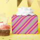 Papel de embalagem de cor kraft, de cor rústica, com cor rosa quente e tiras largas centradas de cor amarela.