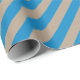 Papel kraft de cor rústica para embalagem de férias, com faixas largas de cor azul capri na diagonal.