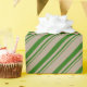 Um papel de embalagem de cor rústica kraft, de cor castanha, que inclui listras de cana doces cor verde-pinho.