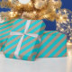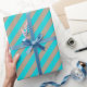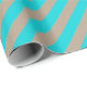 Um papel de embalagem de cor rústica kraft de férias, de cor rústica, com faixas largas azuis de turquesa na diagonal.