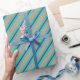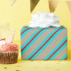 Papel de embalagem de cor kraft rústica, de cor feriada, com um azul-turquesa brilhante com tiras largas e centradas de cor vermelha.