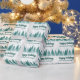 Uma fila elegante de abeberantes de inverno e flocos de neve acima do seu roteiro personalizado de Feliz Feriados e do seu nome comercial em lindo verde-lacre abaixo da floresta cheia de neve. Um presente corporativo moderno de Natal com sua mensagem personalizada em um papel de embrulho festivo para marketing cliente.