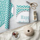 Papel De Presente Feriados felizes do Teal e do Chevron branco zigza